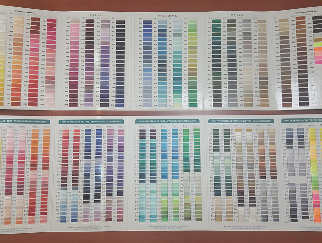 We produce and supply the best Color Sample Book by reflecting the specificity of the materials ranging from various fabrics, spun polyester sewing thread, embroidery thread, bonded thread, metallic thread, nylon thread, rayon thread, spandex thread to special materials such as acrylic.